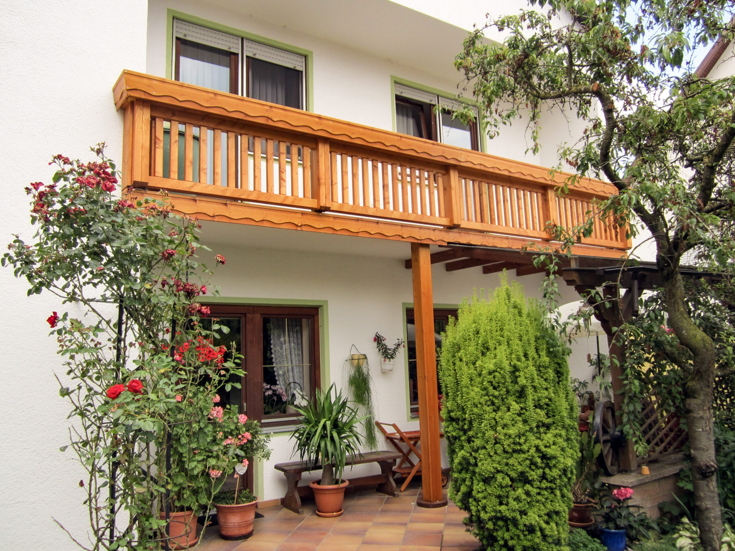 - Zeitgemäßer Holzbalkon